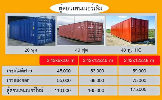 ขายตู้คอนเทนเนอร์ 40HC เกรดAราคาถูก ตู้ละ48,000-55,000บาท ไม่รั่วซึม สภาพดีมาก หรือสั่งดัดแปลงตู้พร้อมทำสีตามแบบในราคาถูก 90,000-120,000บาท