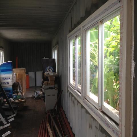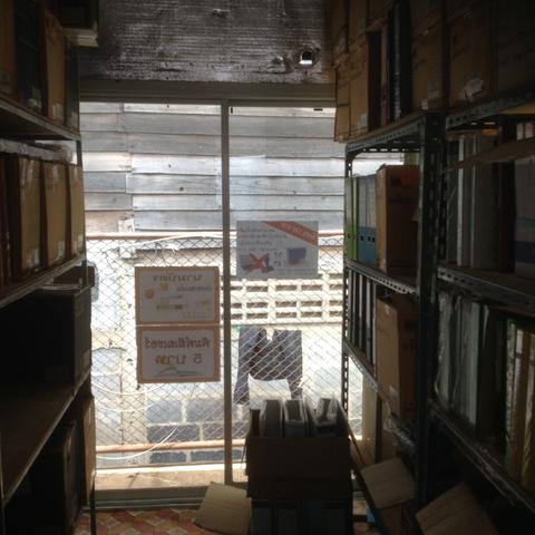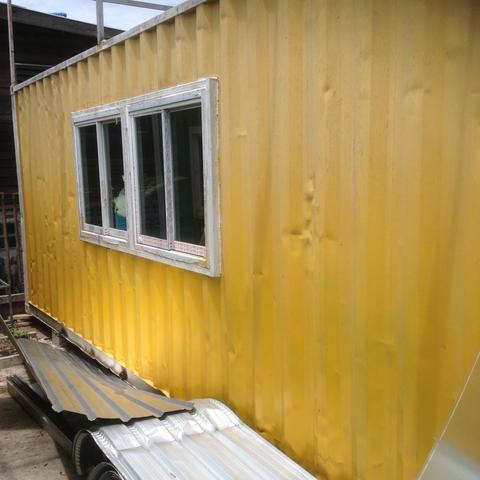 ตู้ที่ 2 สีเหลือง+ฟ้า ใช้เป็นที่เก็บสินค้า มีหน้าต่าง 2 ข้างๆ ละ 2 บานภายในไม่ได้บุผนัง